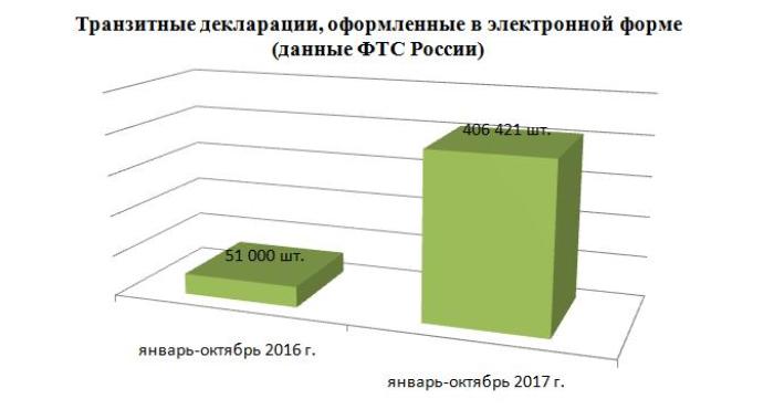 По сравнению с аналогичным периодом прошлого года объемы электронного декларирования транзита увеличились в 5 раз.