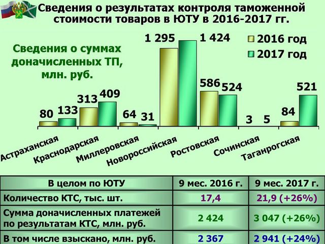 Так, за 9 месяцев 2017 года при прибытии морских и воздушных судов в регионе ЮТУ заинтересованными лицами предварительная информация предоставлялась в отношении 99,34 % (АППГ – 99,56) и 93,6% (АППГ – 89,52) соответственно.