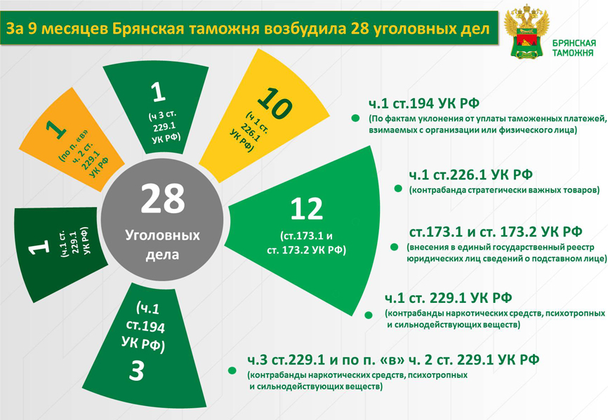 Также уголовные дела возбуждались по контрабанде сильнодействующих веществ и за незаконное использование документов для образования юридического лица.