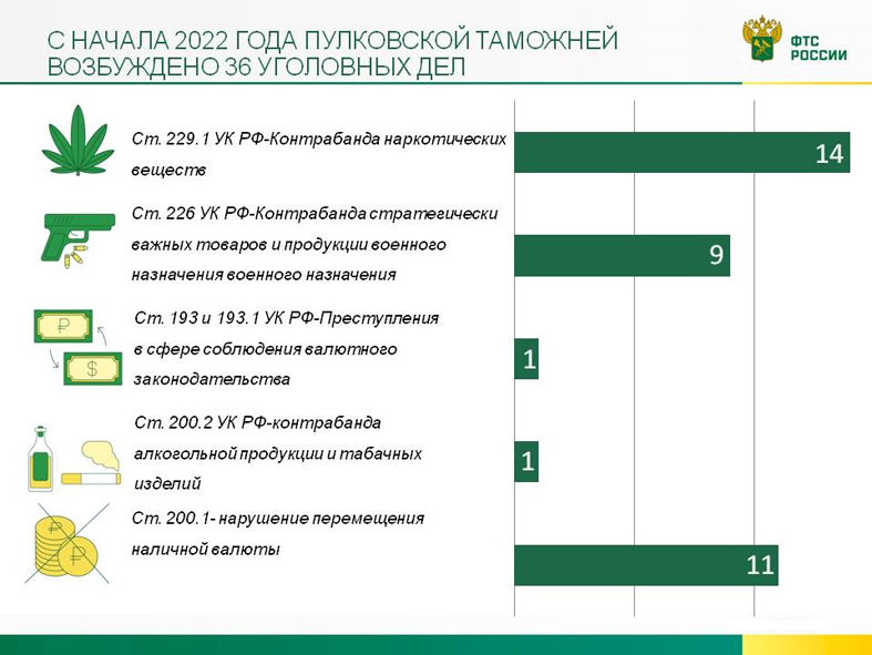 За 11 месяцев 2022 года по итогам правоохранительной деятельности сотрудники Центрального таможенного управления возбудили 172 уголовных дела и 16,5 тыс. дел об административных правонарушениях.