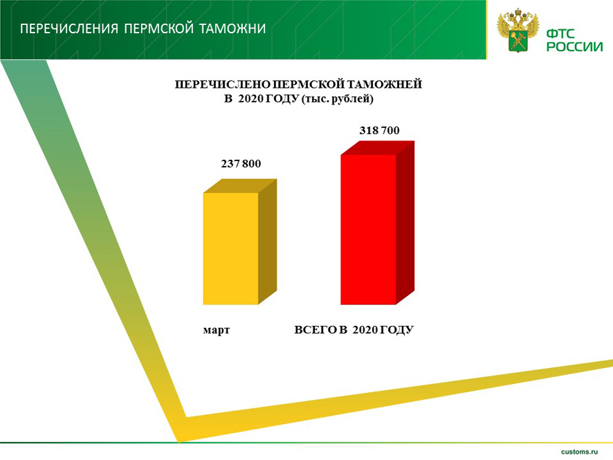 Перечисления Пермской таможней в марте составили более 237 миллионов рублей