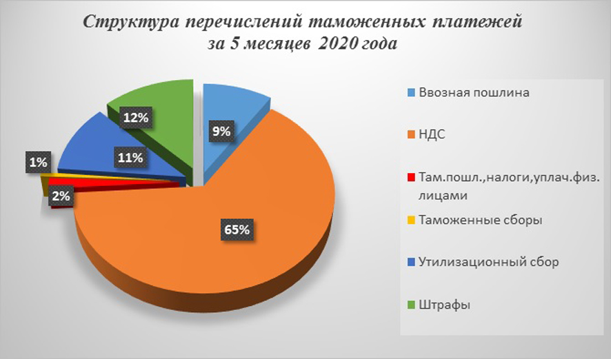 С января по май 2020 года Новосибирская таможня перечислила в федеральный бюджет 2,2 млрд. рублей, почти столько же, сколько и за аналогичный период 2019 года (2,3 млрд. рублей).