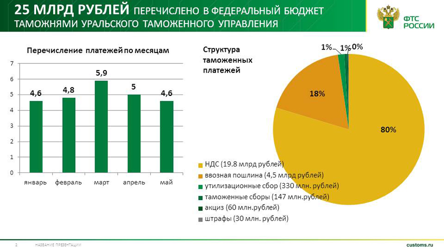 Перечисления Татарстанской таможни в федеральный бюджет