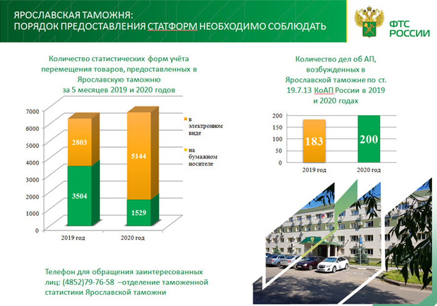 Ярославская таможня обращает внимание на необходимость соблюдения порядка представления статистических форм