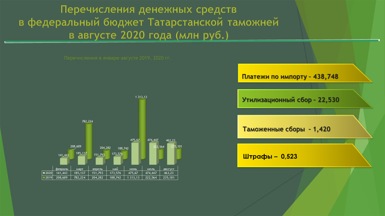 Всего с начала 2020 года Татарстанская таможня направила в федеральный бюджет 2 млрд 250 млн 486 тыс. руб.