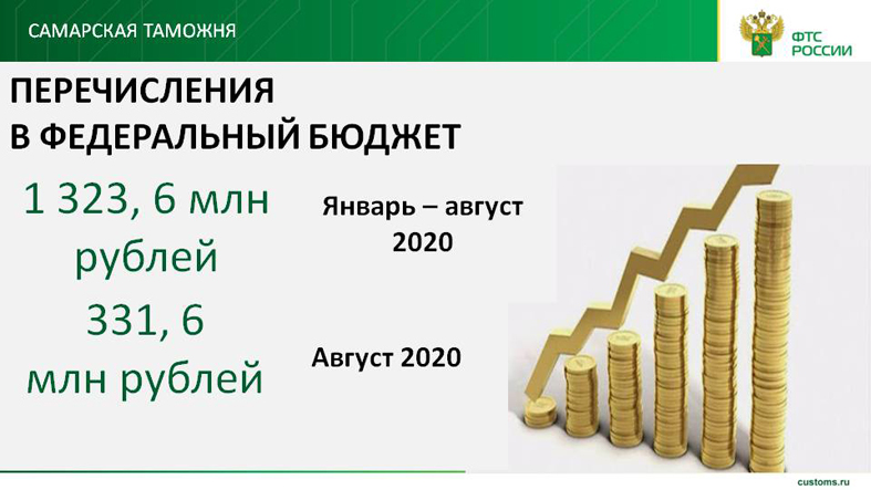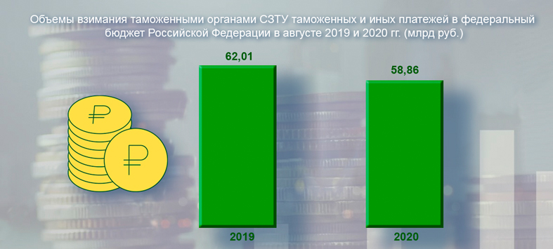 Об объемах взимания таможенными органами СЗТУ таможенных платежей в федеральный бюджет РФ в августе 2020 года