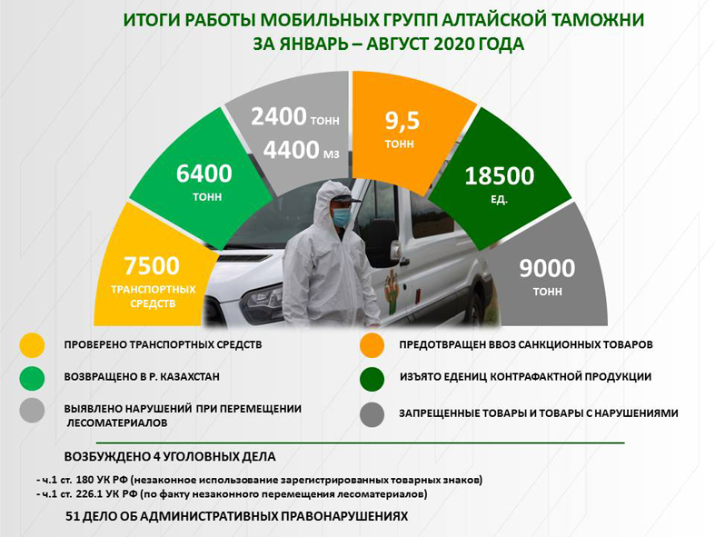 239 уголовных дел по фактам контрабанды леса и лесоматериалов на 4,4 млрд руб. возбудили в январе-августе 2020 года таможенные органы. Данные факты были выявлены в результате мероприятий по декриминализации лесной отрасли, проводимых самостоятельно и во взаимодействии с ФСБ России и МВД России.