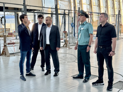 В рамках своего визита Валерий Пикалёв совместно с генеральным директором АО «Международный аэропорт Хабаровск» Юрием Кондратчиком посетили площадку, где в настоящий момент идёт строительство нового международного терминала. Он должен открыться в марте 2025 года, его пропускная способность составит 600 пассажиров в час, в 2 раза выше текущей (300 пассажиров).