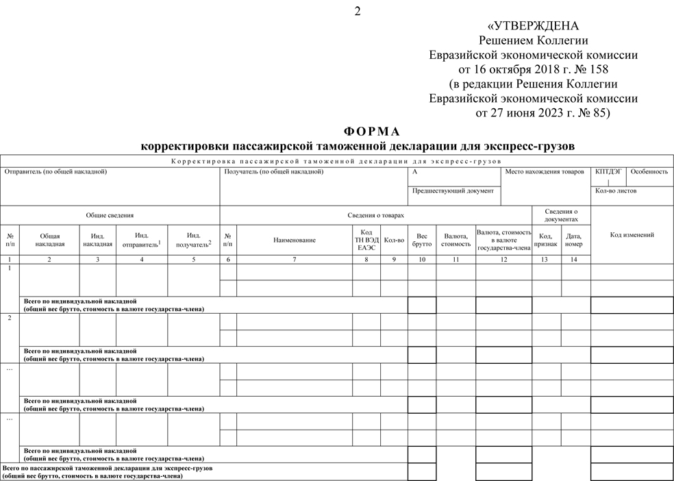 Корректировка пассажирской таможенной декларации для экспресс-грузов |