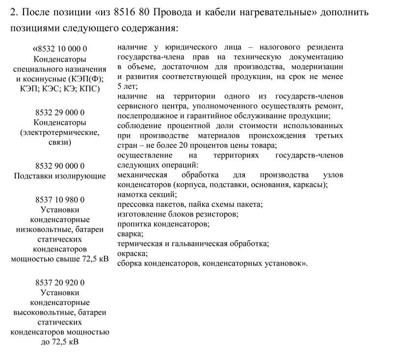 1. В пункте 2 постановления Правительства Российской Федерации от 18 марта 2023 г. № 414 "О мерах по реализации подпункта 7.1.56 пункта 7 решения Комиссии Таможенного союза от 27 ноября 2009 г. № 130 "О едином таможенно-тарифном регулировании Евразийского экономического союза" в отношении отдельных видов мяса крупного рогатого скота замороженного" (Собрание законодательства Российской Федерации, 2023, № 13, ст. 2271) абзацы второй седьмой заценить абзацем следующего содержания: "производство продукции из мяса убойных животных и мяса птицы (код 10.13 ОКВЭД2);".